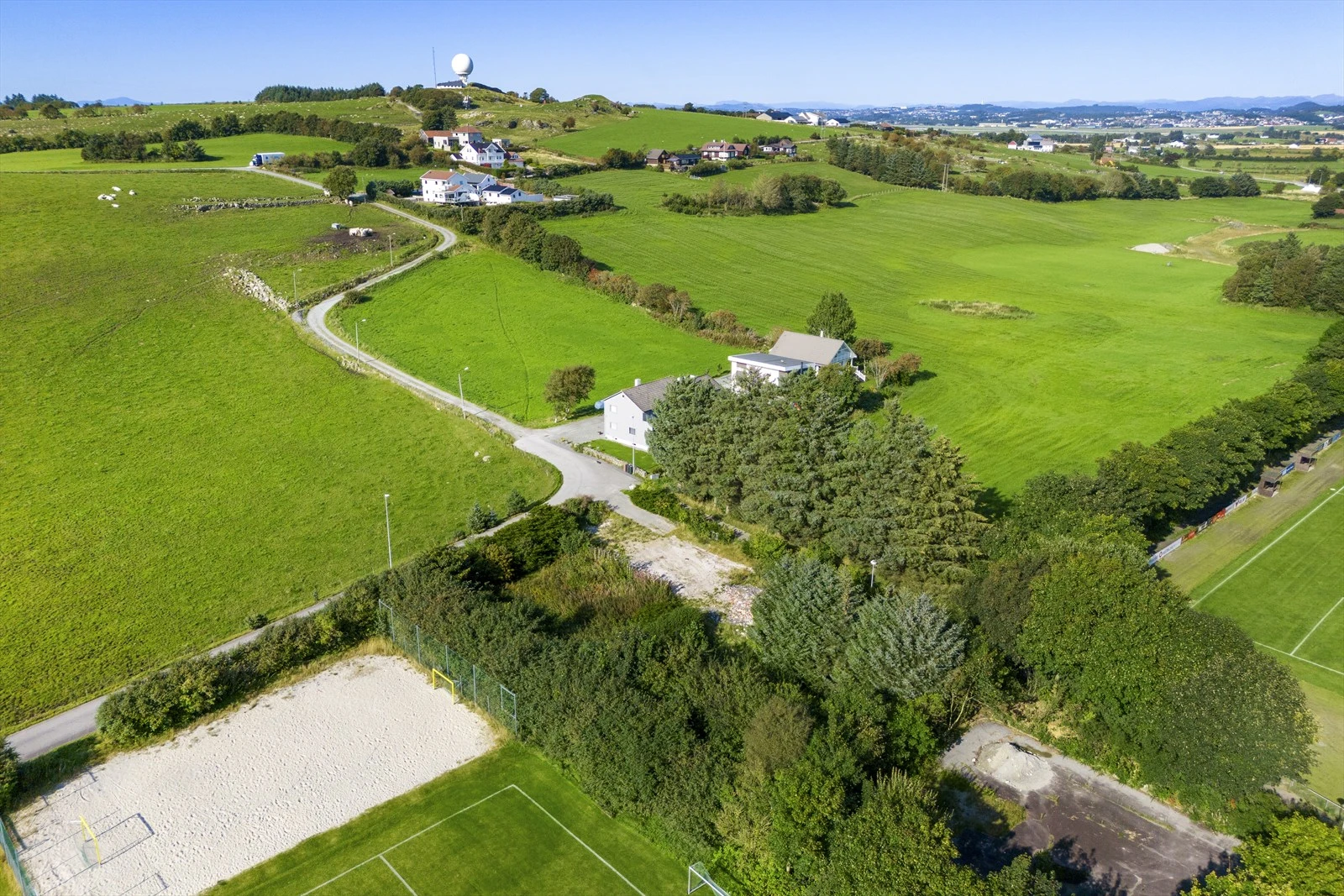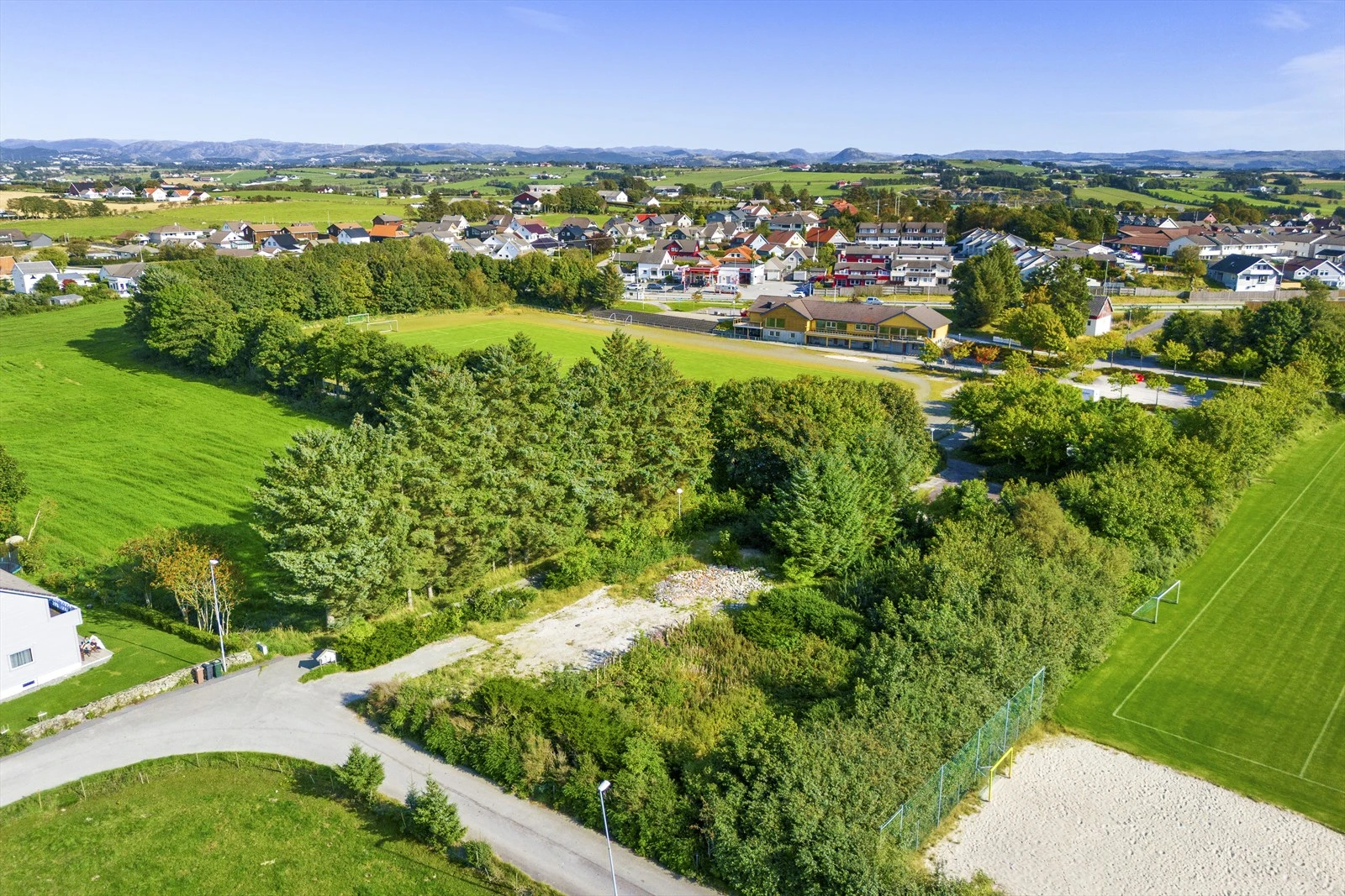Like bak idrettsanlegget og TS-banen på Tjelta. Eiendommen ligger for seg selv og grenser mot friområder. Det er kort vei til skole, svømmehall, butikk, legekontor, helsestasjon, frisør m.m.