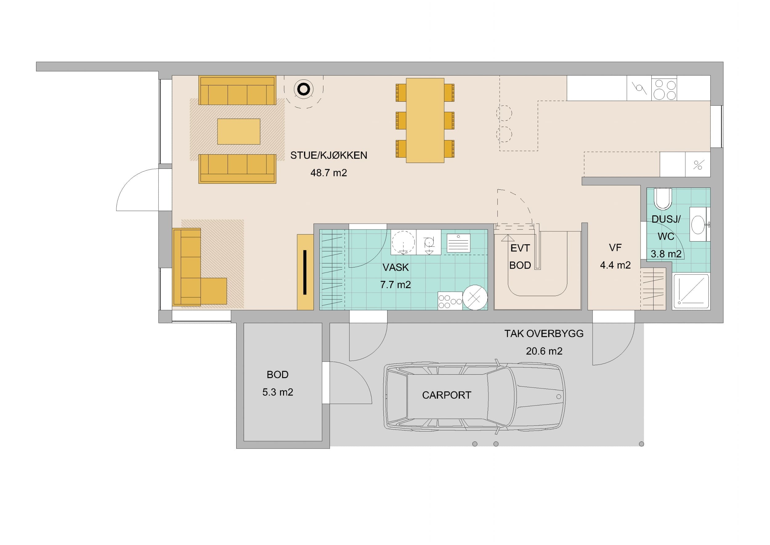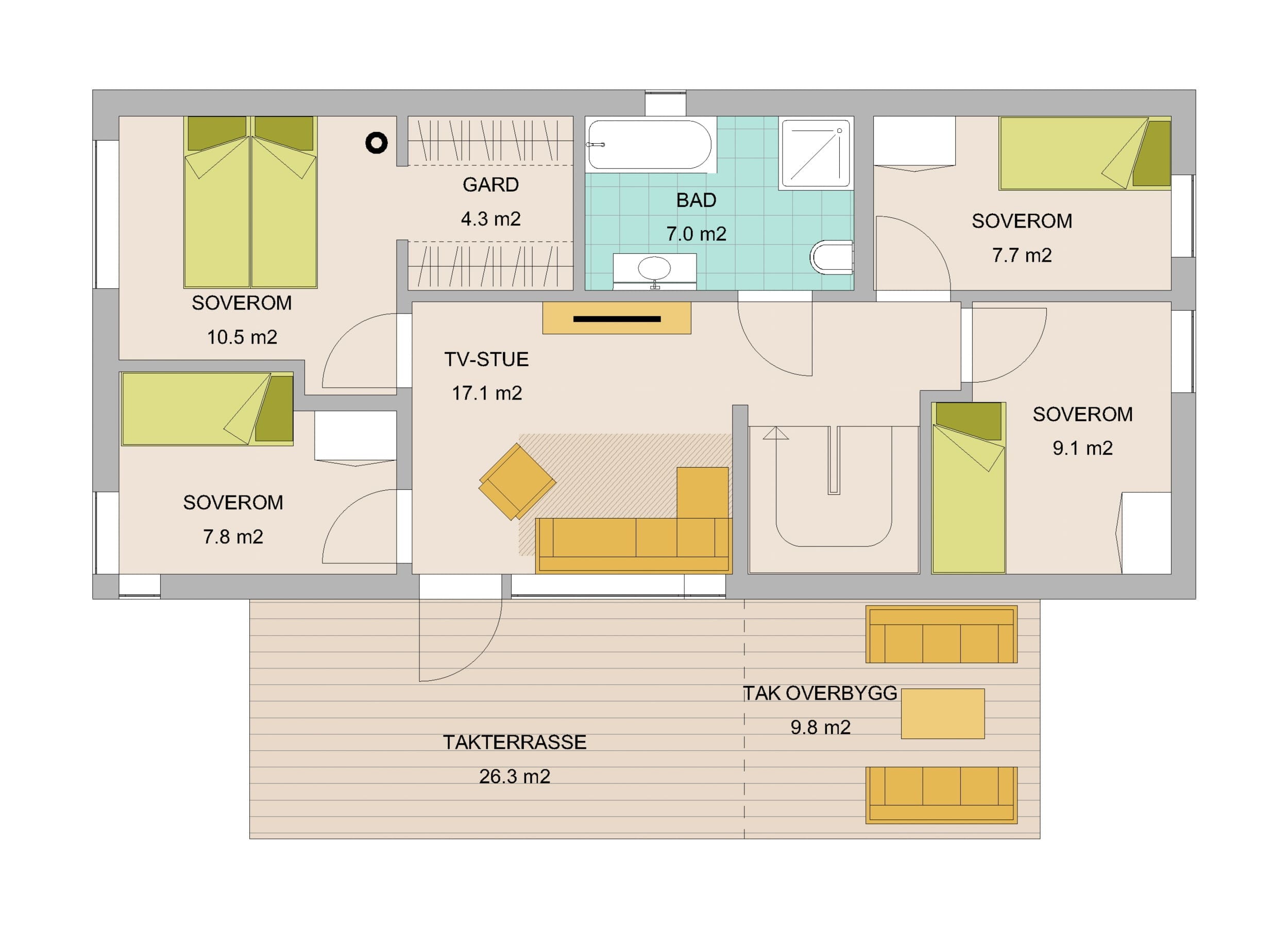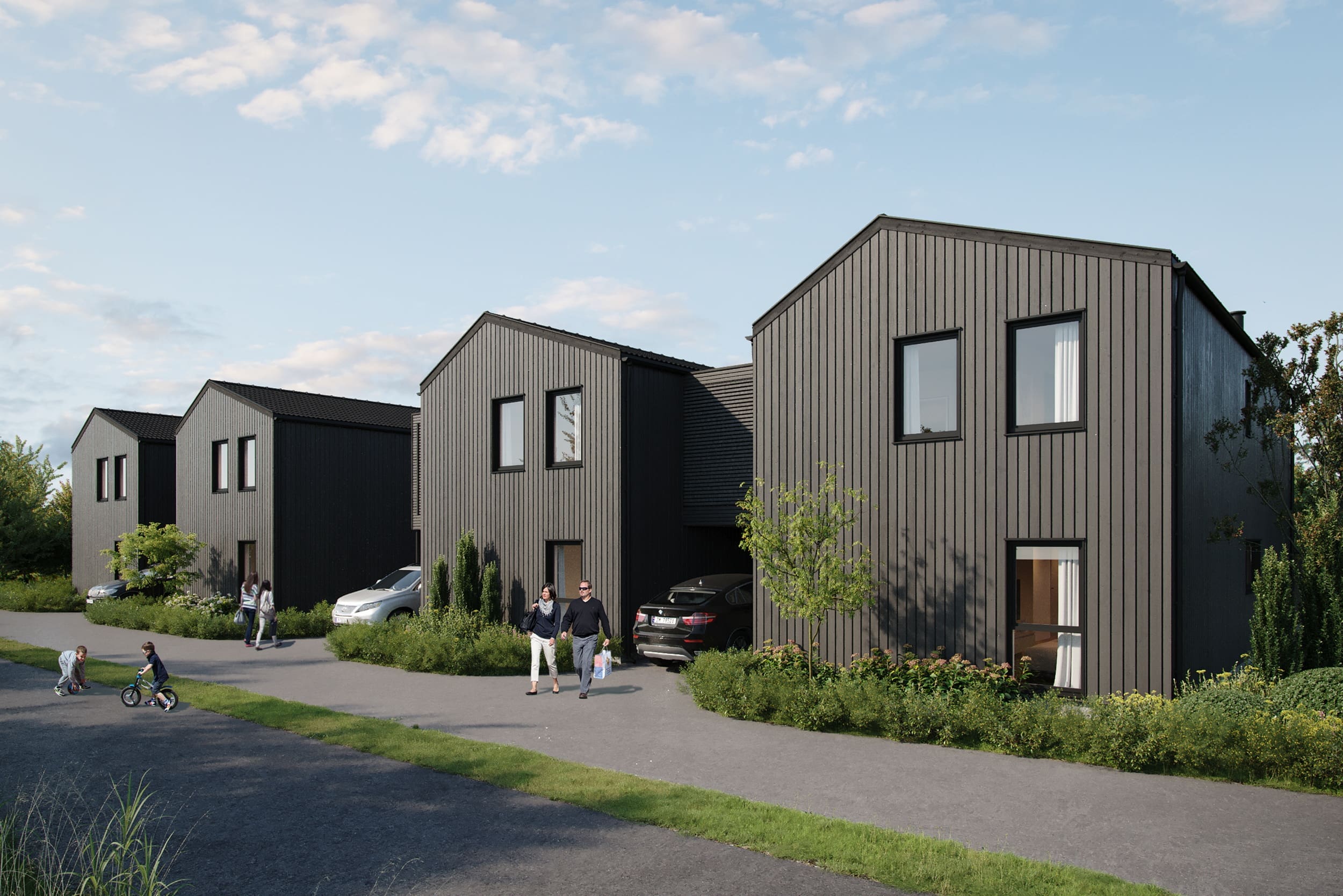 Prosjektet består av 4 praktiske eneboliger med 4 soverom, 2 stuer og 2 bad. Alle boligene får en herlig takterrasse, utvendig bod og parkering i carport.